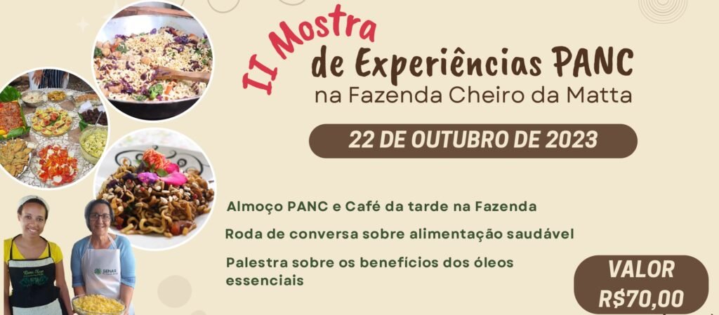 A 2ª Mostra de Experiências PANC na Fazenda Cheiro da Mata é um convite para descobrir o potencial nutritivo e medicinal que a natureza gentilmente nos oferece. É uma oportunidade para celebrar a vida em sua forma mais pura e simples, cultivando uma conexão mais profunda com a terra e seus tesouros naturais. Não perca essa chance de ampliar seus horizontes culinários e abraçar a magia das PANCs. Agende essa data e venha se deliciar com a generosidade da natureza!