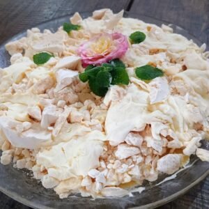 Delicie-se com o nosso irresistível Doce de Abacaxi com merengue e nata. Uma verdadeira obra-prima da confeitaria! É um doce leve e úmido, em camadas de sabores, combinando a doçura do abacaxi com a leveza do merengue e a cremosidade da nata. Decorado com delicadas flores comestíveis, ele não só encanta o paladar, mas também é um verdadeiro espetáculo visual. Perfeito para festas, celebrações ou simplesmente para adoçar o seu dia, este doce traz a essência tropical em cada porção!
